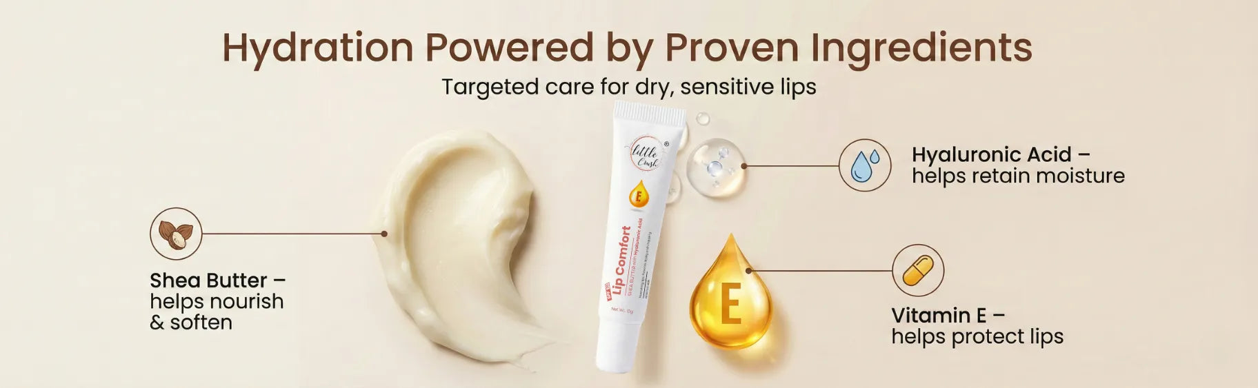 Little Crush Lip Comfort | Vitamin E Lip Balm | with Shea Butter, Hyaluronic Acid, Vitamin E, SPF 30, Sensitive Skin, 10g